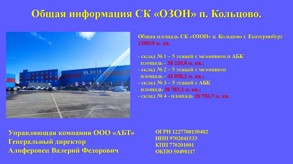 Склад № 47. Общая информация СК «ОЗОН» п. Кольцово.