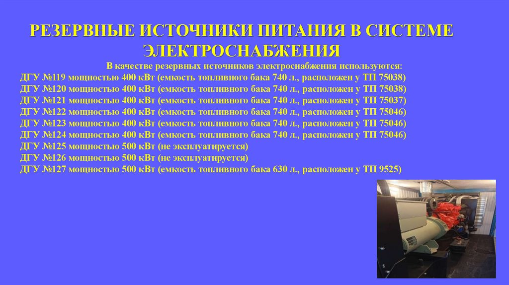 - дизель-генераторных установках (ДГУ) в кол-ве 7 шт;