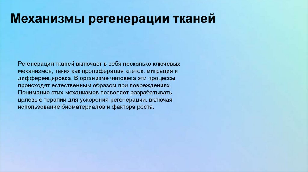 Механизмы регенерации тканейРегенерация тканей включает в себя несколько ключевых