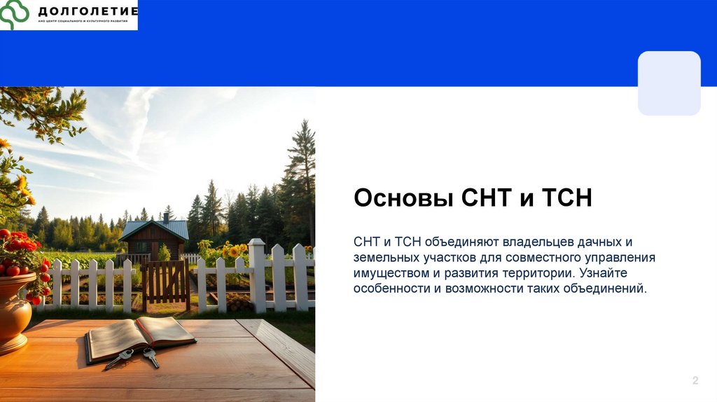 Основы СНТ и ТСНСНТ и ТСН объединяют владельцев дачных и