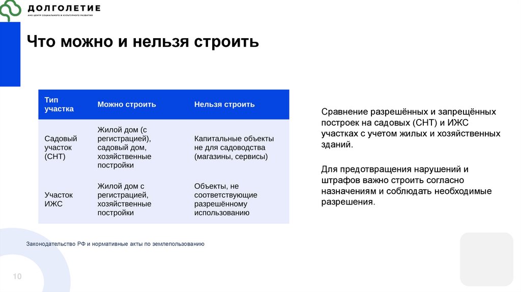 Что можно и нельзя строитьСравнение разрешённых и запрещённых