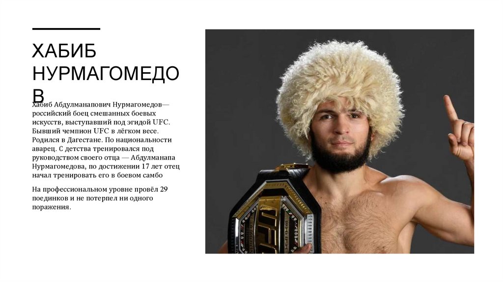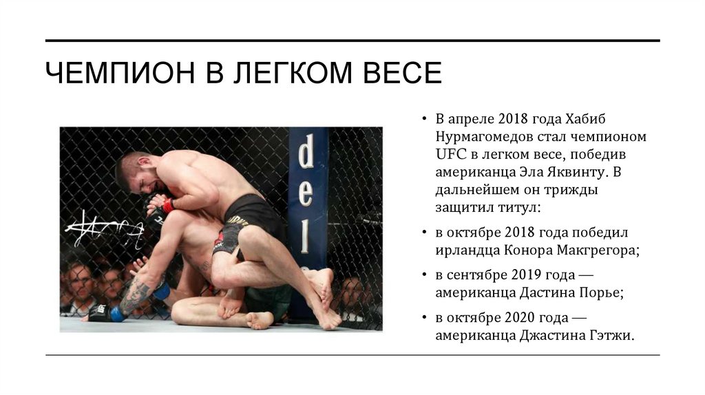 ЧЕМПИОН В ЛЕГКОМ ВЕСЕ• В апреле 2018 года Хабиб