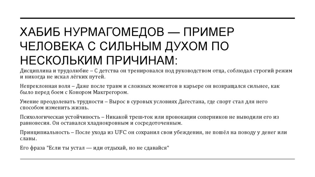 3. Хабиб Нурмагомедов — пример человека с сильным духом по нескольким причинам: