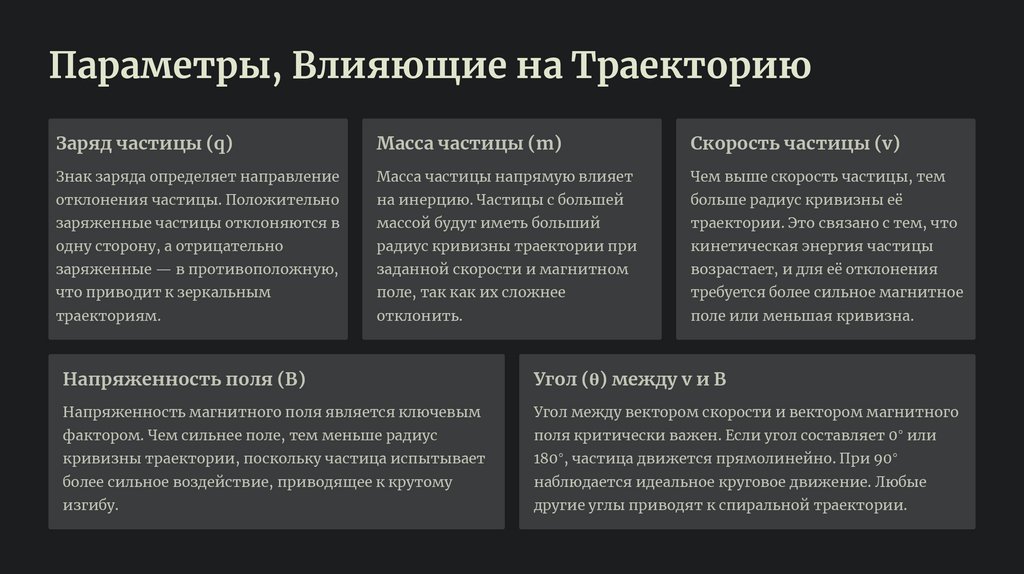 Параметры, Влияющие на ТраекториюЗаряд частицы (q)