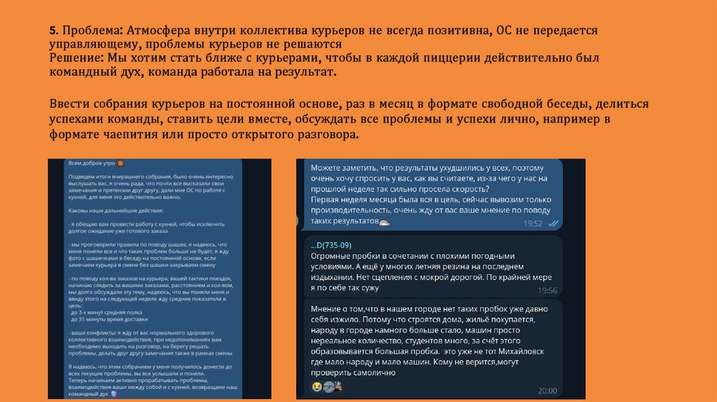 8. 5. Проблема: Атмосфера внутри коллектива курьеров не всегда позитивна, ОС не передается управляющему, проблемы курьеров не