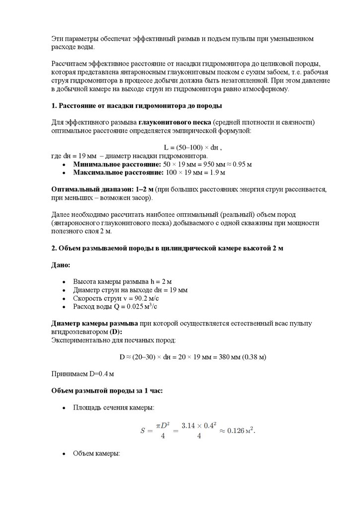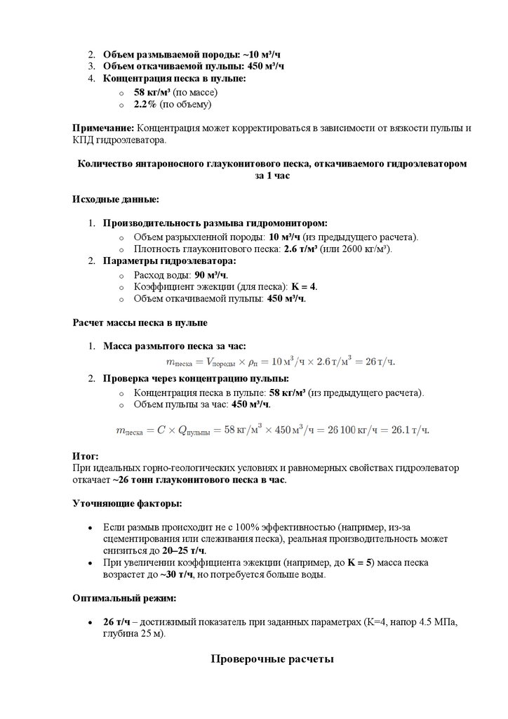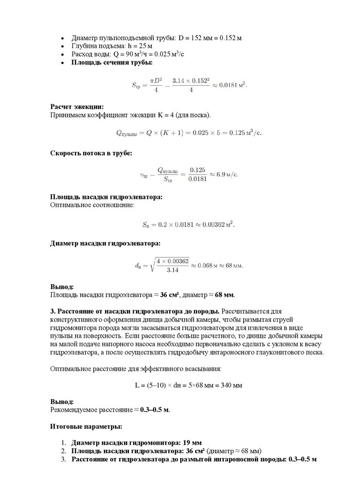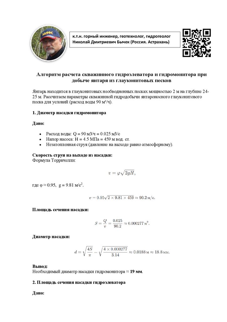 Алгоритм расчета скважинного гидроэлеватора и гидромонитора при добыче янтаря из глауконитовых песков