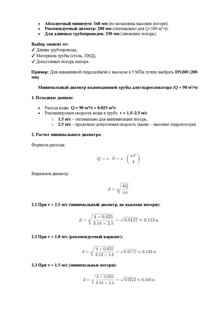 Hmin = 25×(1+4×0.2) + 2.58 ≈ 25×1.8 + 2.58 ≈ 47.6 мЗапас напора: 459/47.6 ≈ 9.6 раз (достаточно)