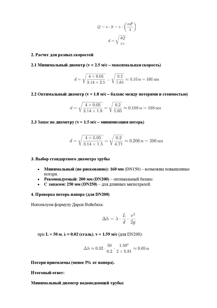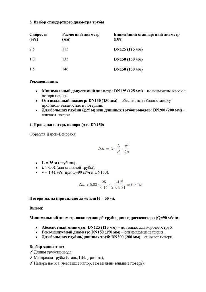 Потери напора (L=25 м): Δh ≈ 2.58 м (при λ=0.02)