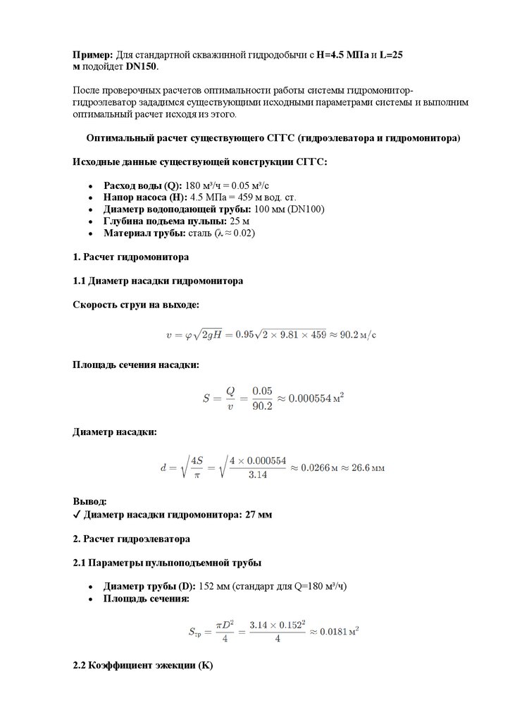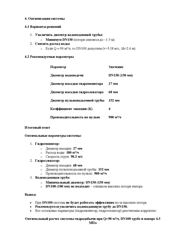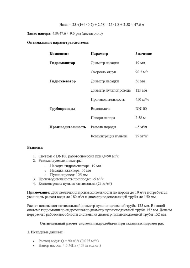 Оптимальный расчет системы гидродобычи при заданных параметрах