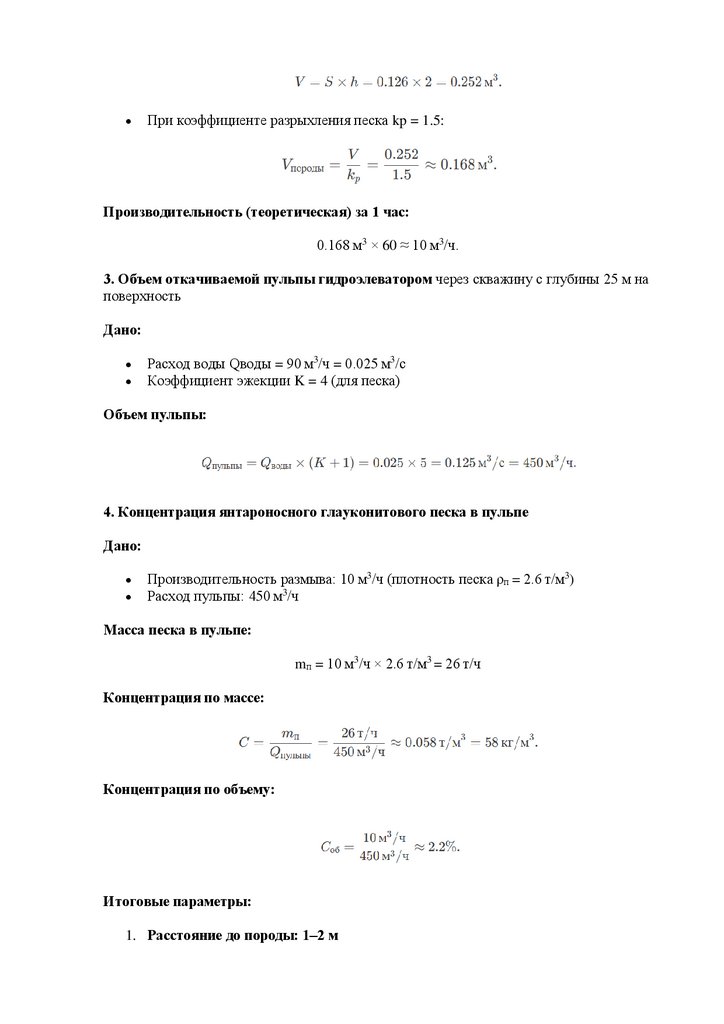Янтарь находится в глауконитовых необводненных песках мощностью 2 м на глубине 2425 м. Рассчитаем параметры скважинной гидродобычи янтароносного глауконитового