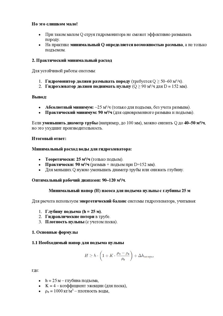 Эти параметры обеспечат эффективный размыв и подъем пульпы при уменьшенномрасходе воды.