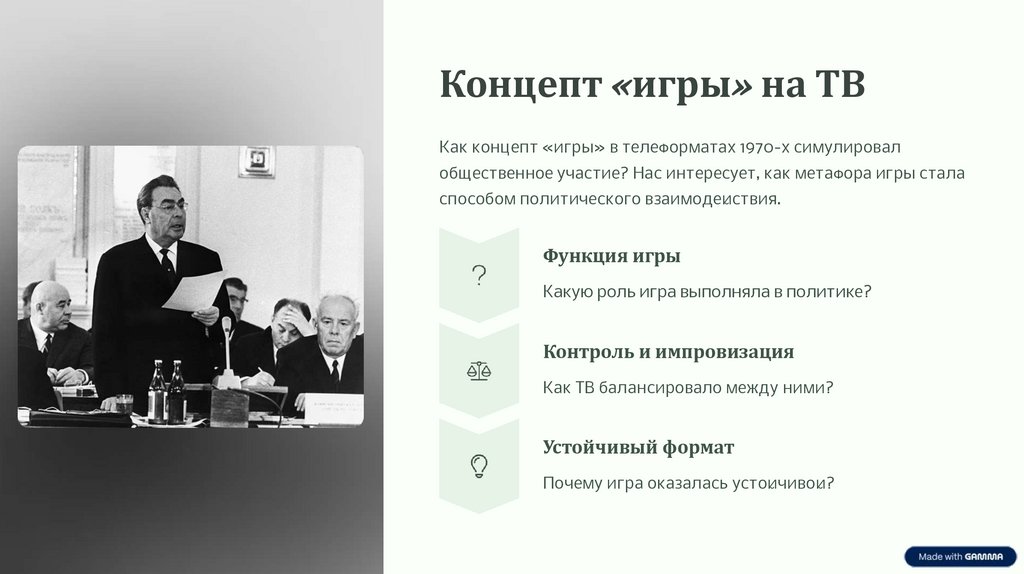 Концепт «игры» на ТВКак концепт «игры» в телеформатах 1970-х симулировал