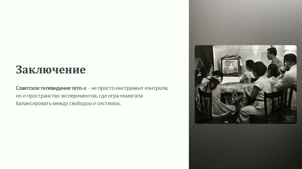 ЗаключениеСоветское телевидение 1970-х – не просто инструмент контроля,