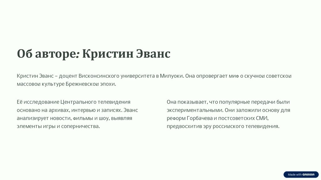 Об авторе: Кристин ЭвансКристин Эванс — доцент Висконсинского университета в Милуоки. Она опровергает миф о скучной советской