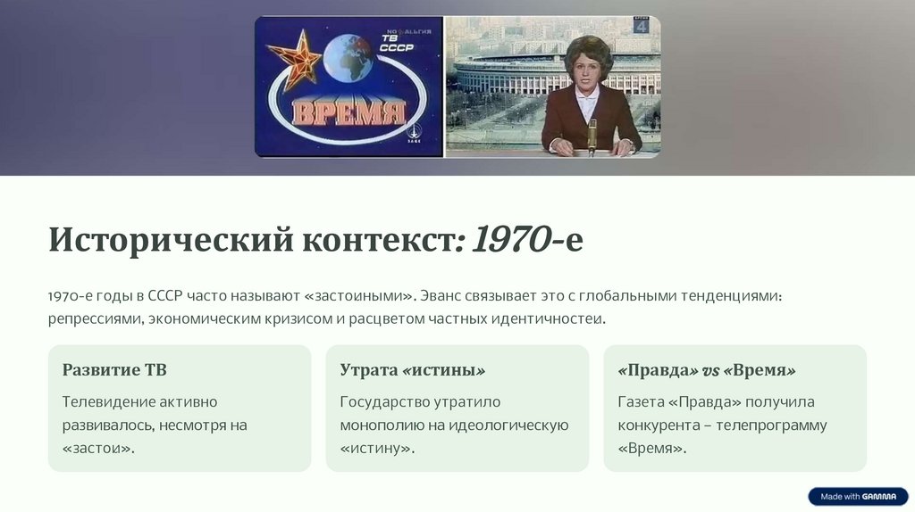 Исторический контекст: 1970-е1970-е годы в СССР часто называют «застойными». Эванс связывает это с глобальными тенденциями:
