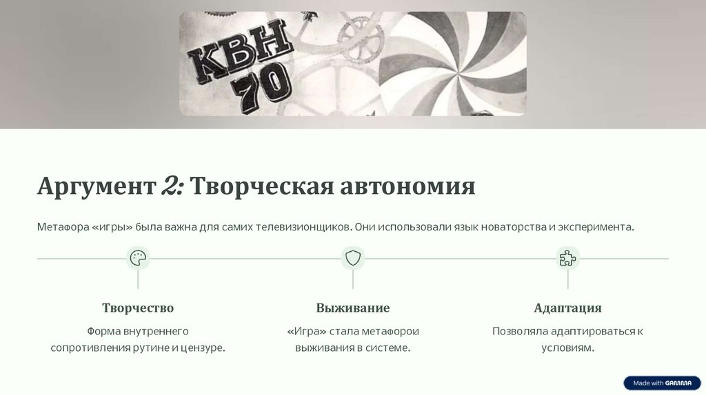 Аргумент 2: Творческая автономияМетафора «игры» была важна для самих телевизионщиков. Они использовали язык новаторства и эксперимента.