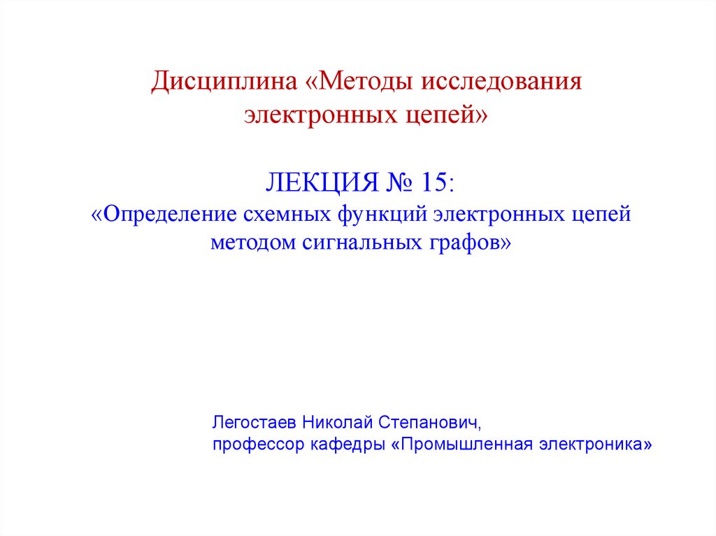 Определение схемных функций электронных цепей методом сигнальных графов. Лекция №15