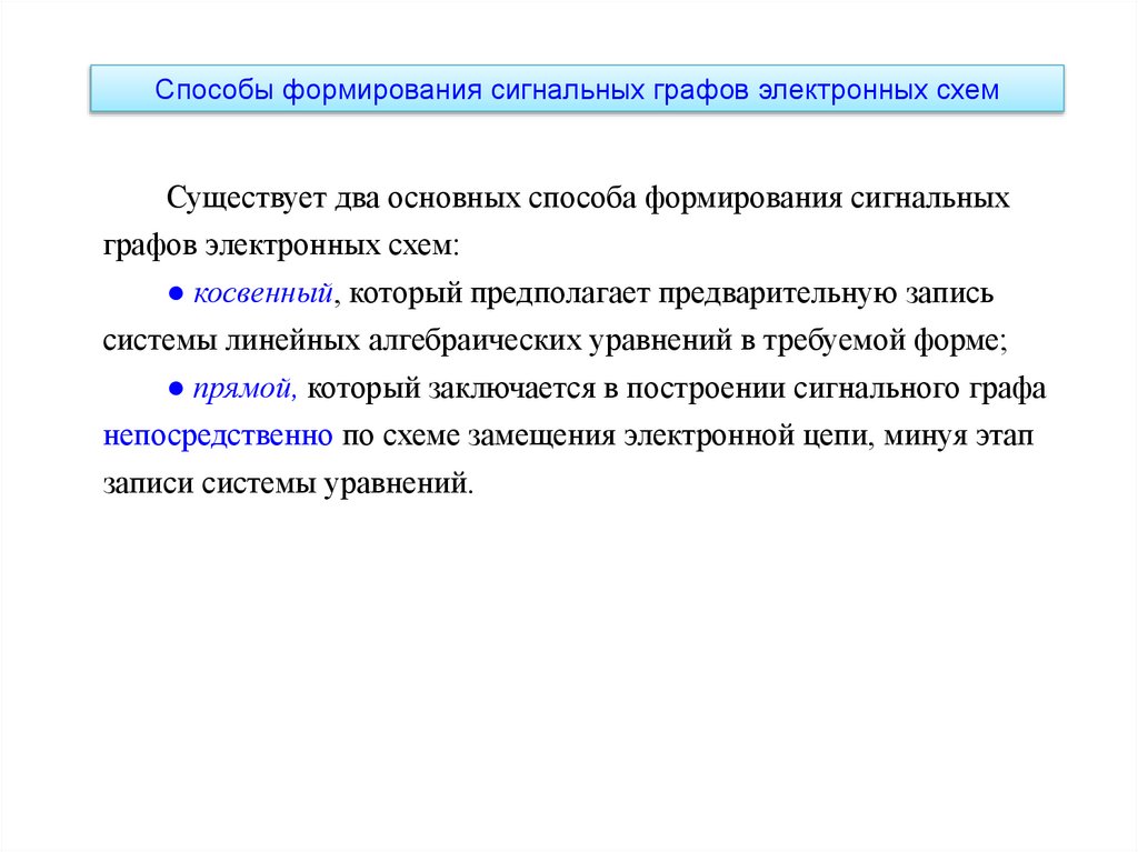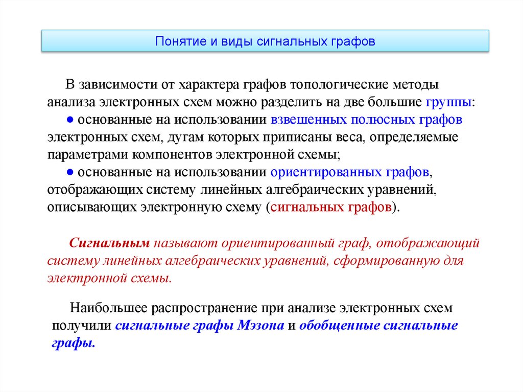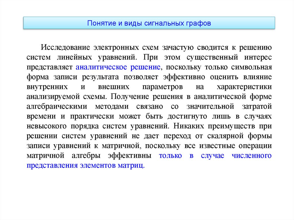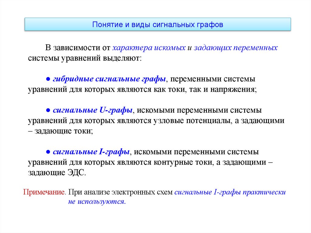 Понятие и виды сигнальных графовИсследование электронных схем зачастую сводится к решению