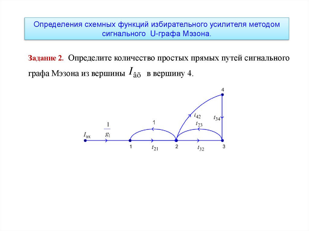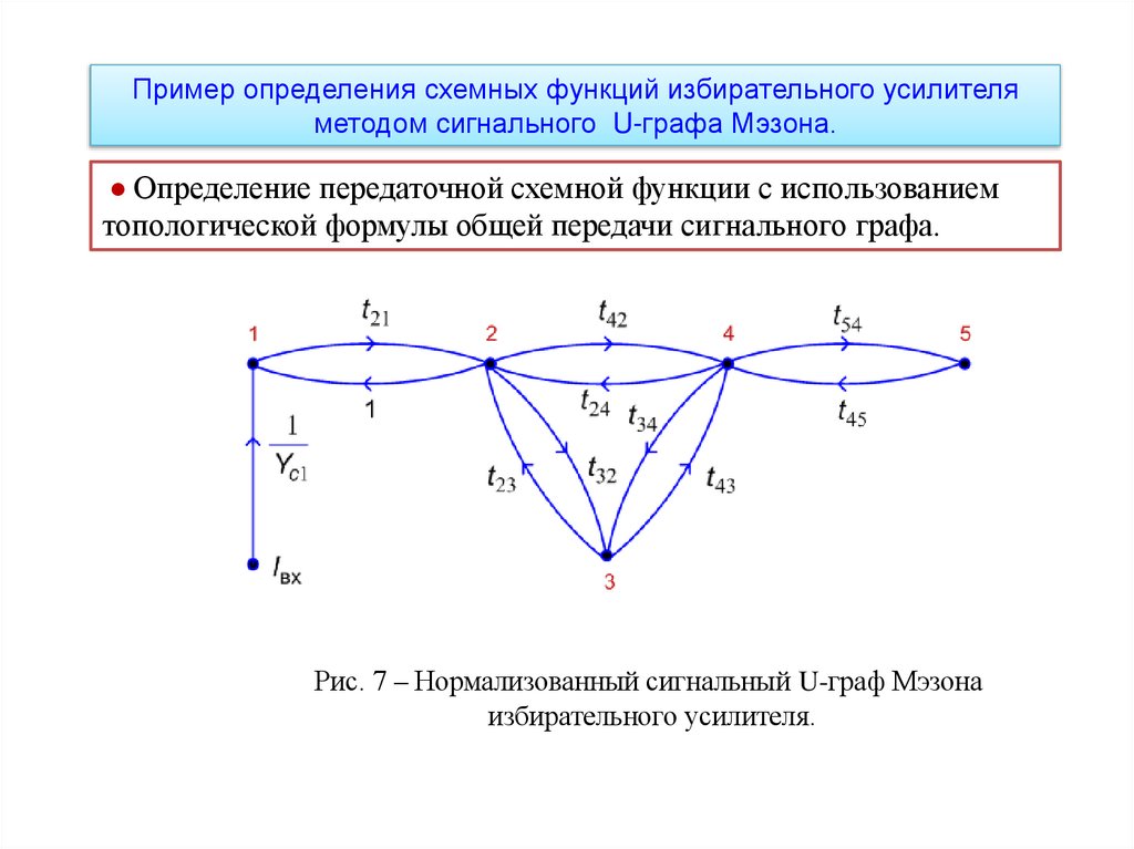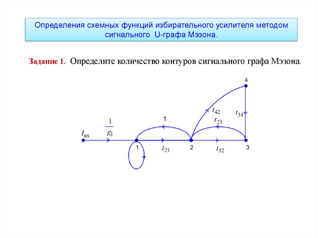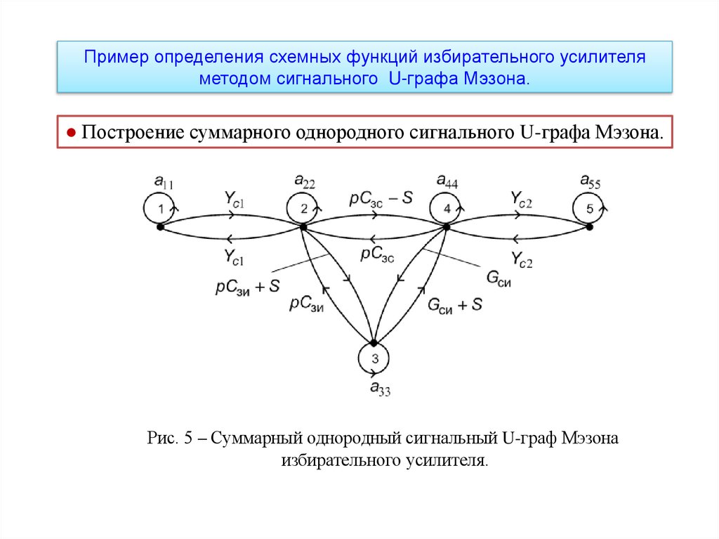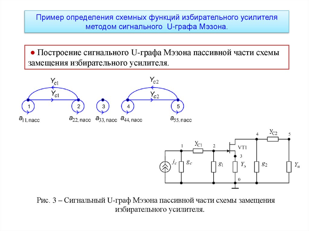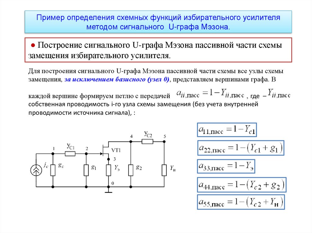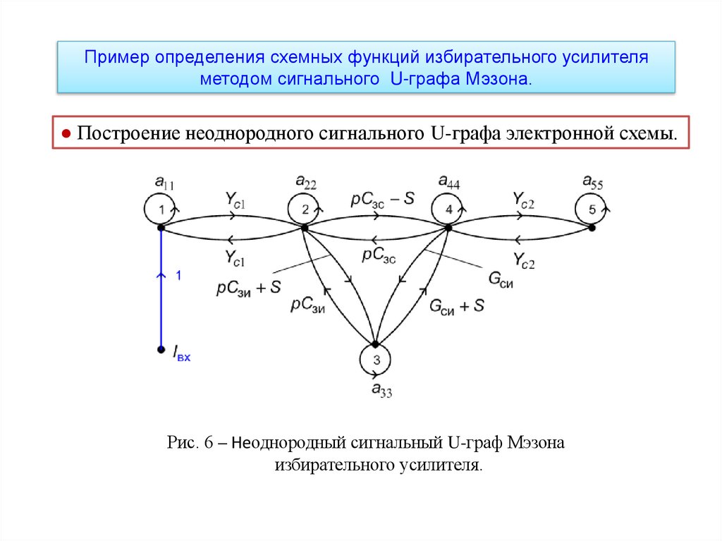 Определения схемных функций избирательного усилителя методомсигнального U-графа Мэзона.