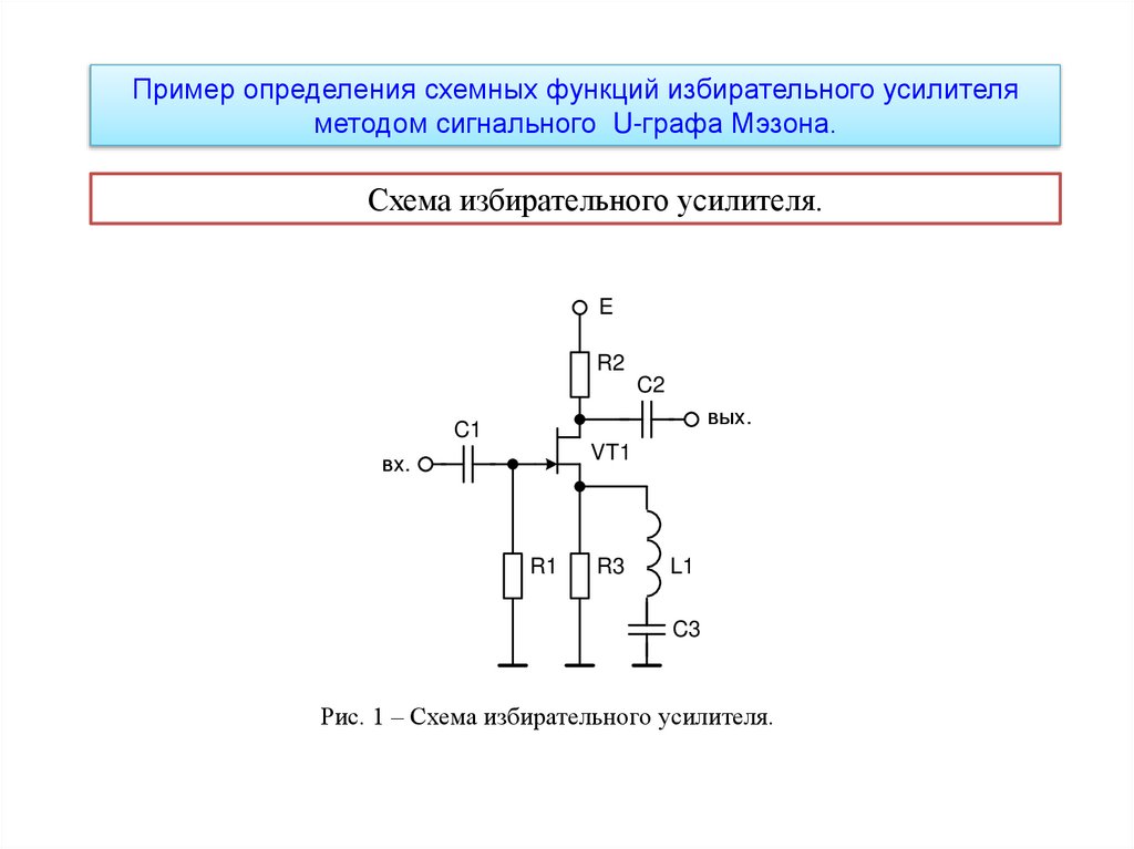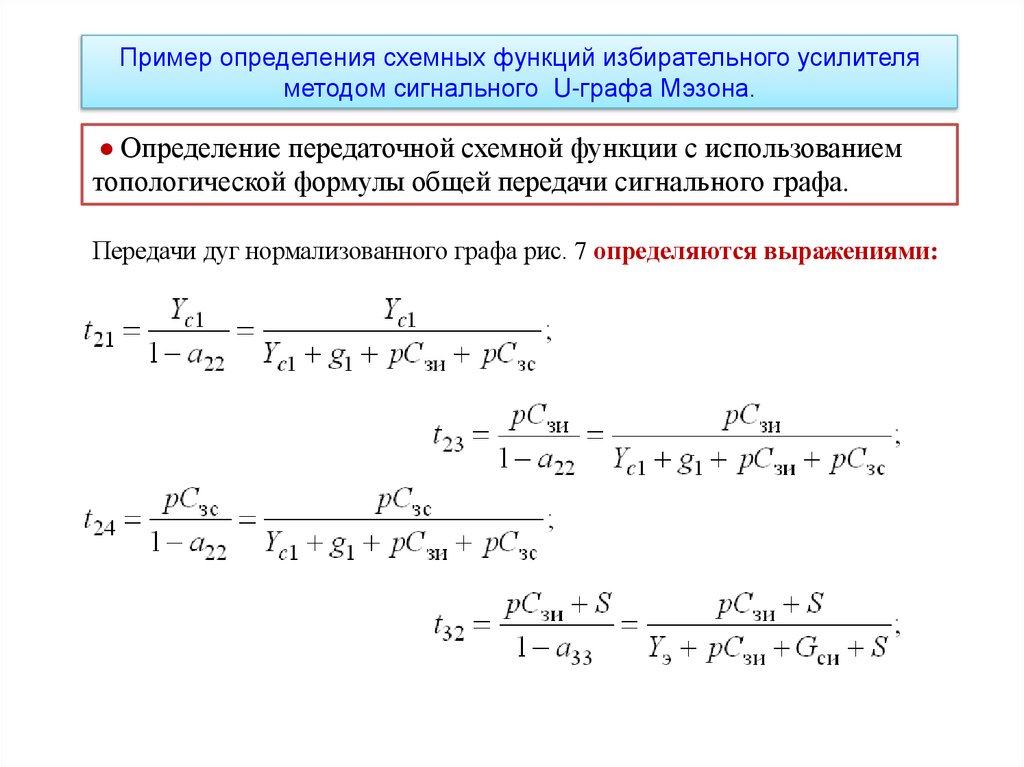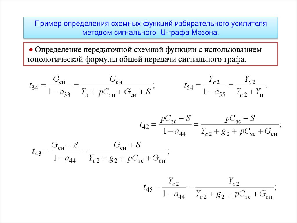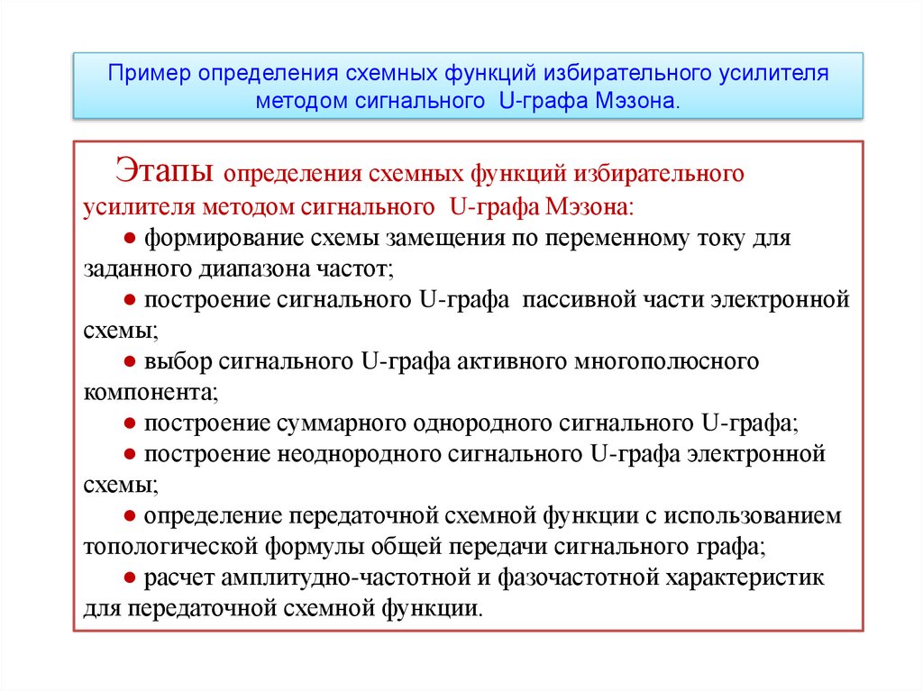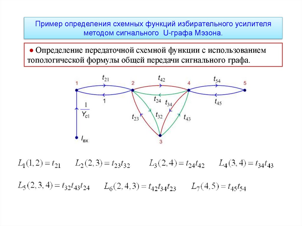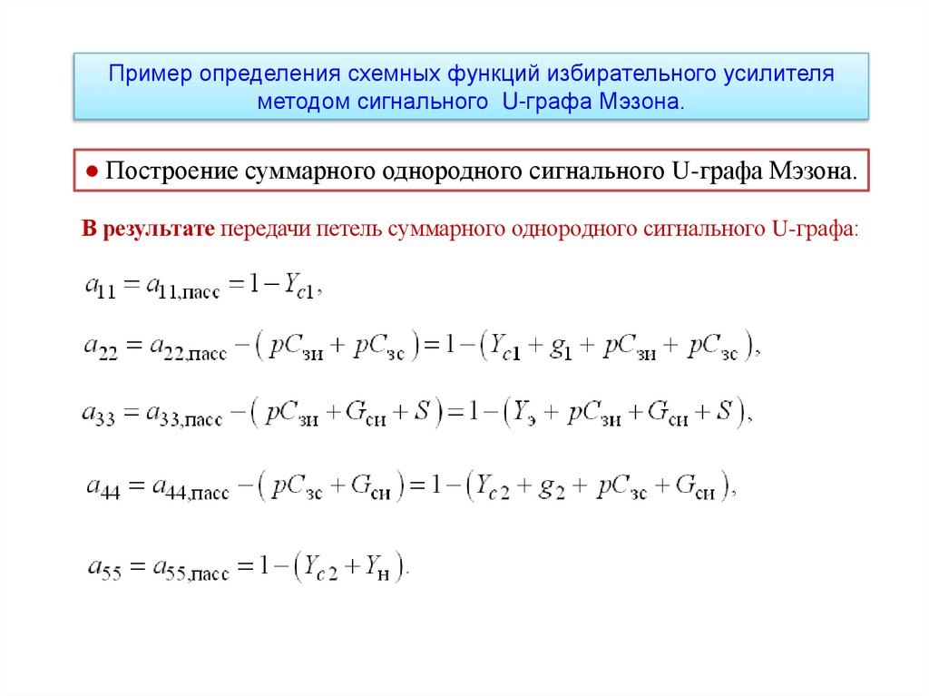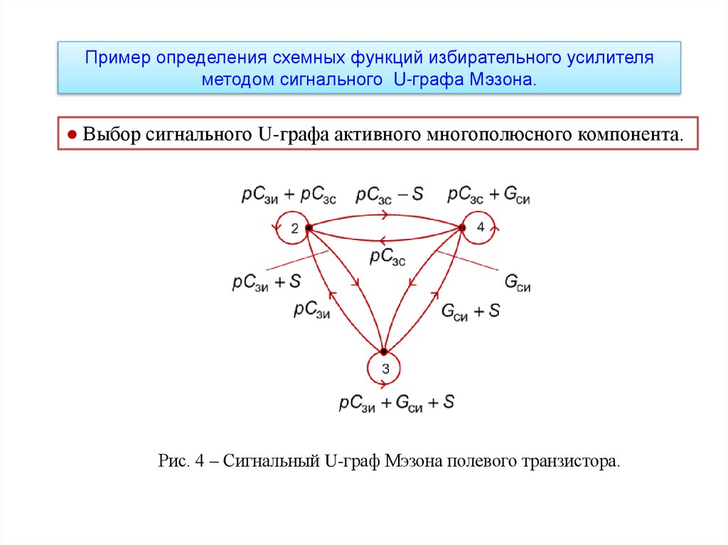 Определения схемных функций избирательного усилителя методомсигнального U-графа Мэзона.
