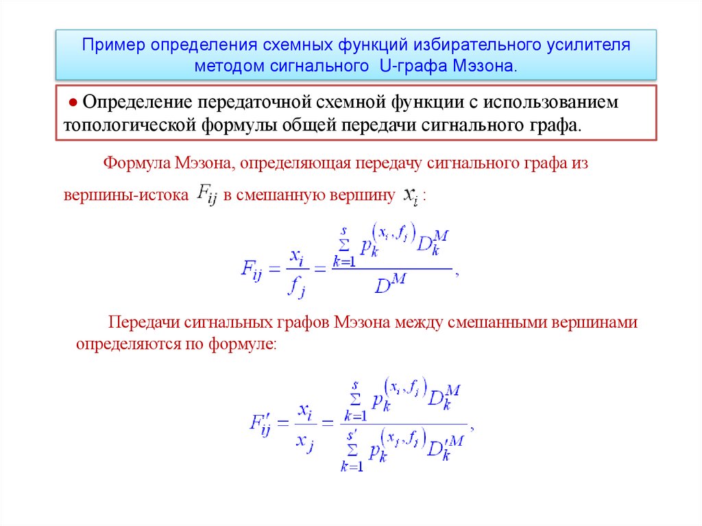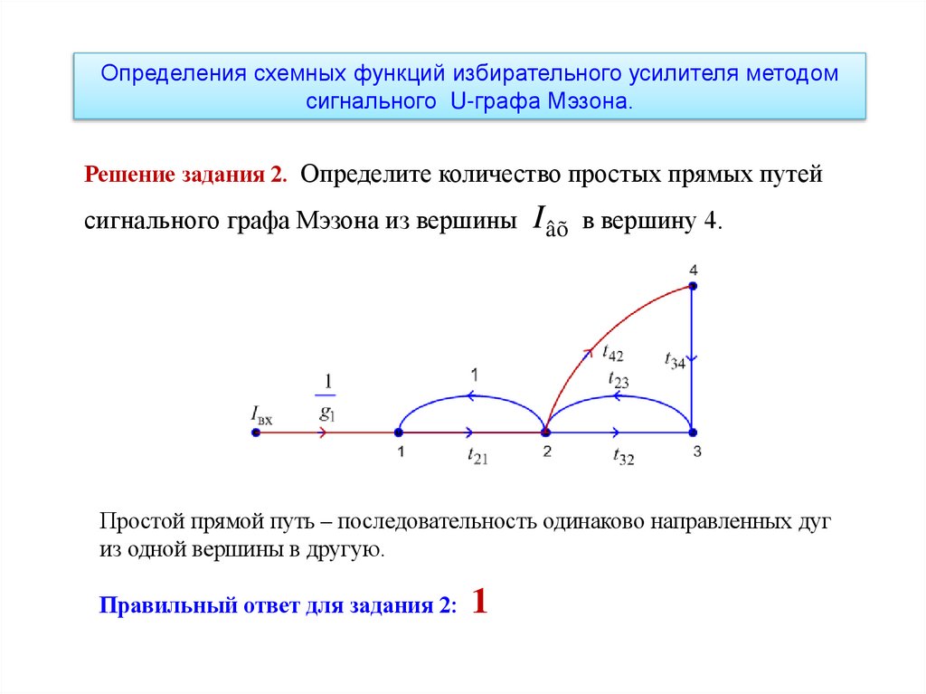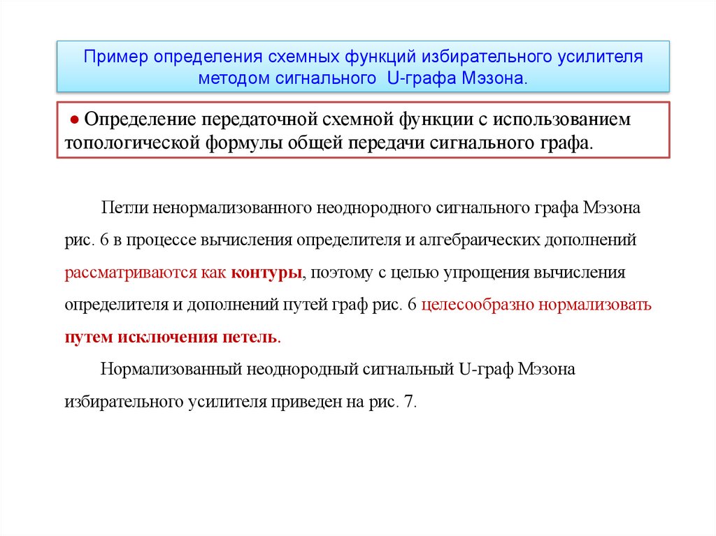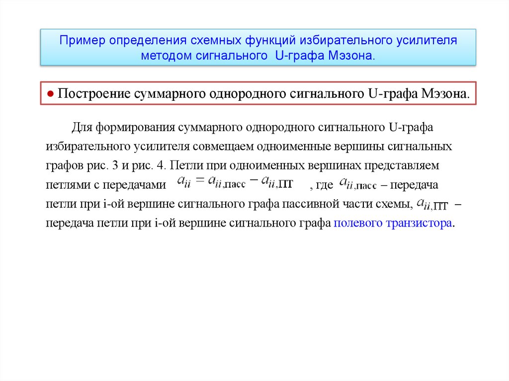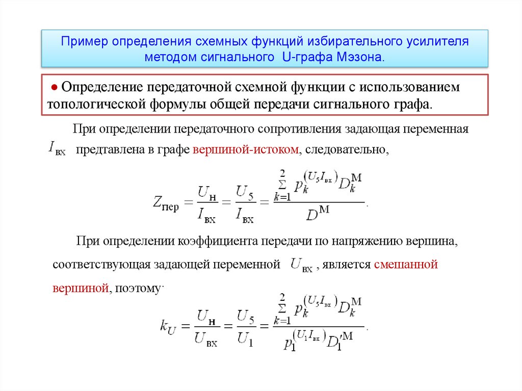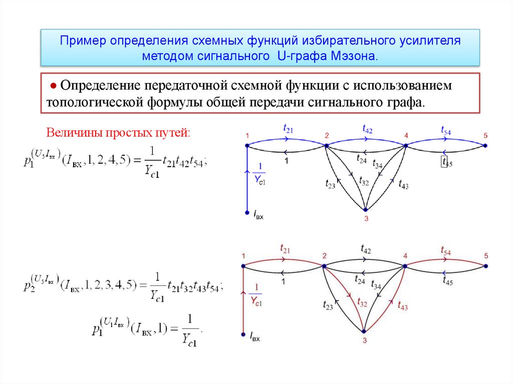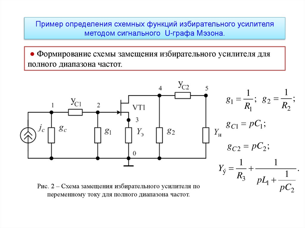 Определения схемных функций избирательного усилителя методомсигнального U-графа Мэзона.