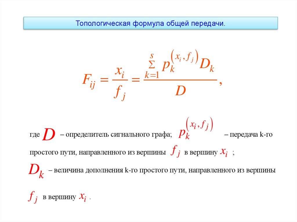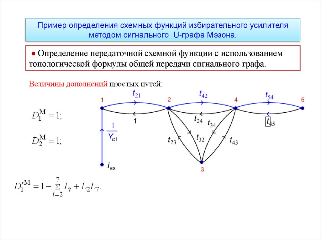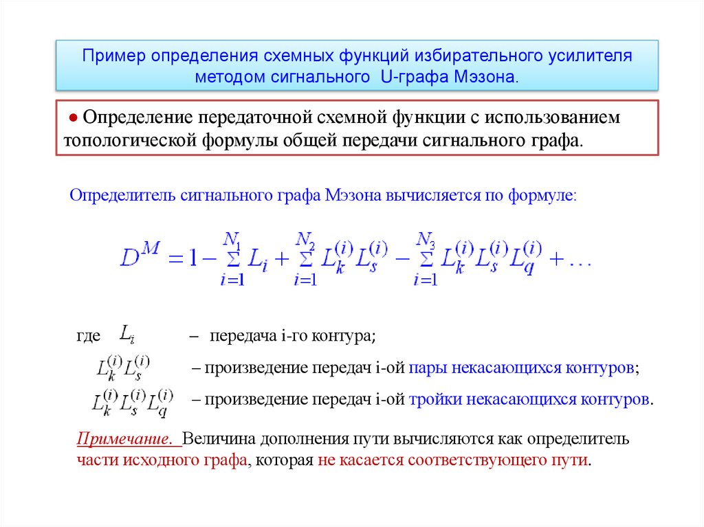 Определитель сигнального графа Мэзона вычисляется по формуле: