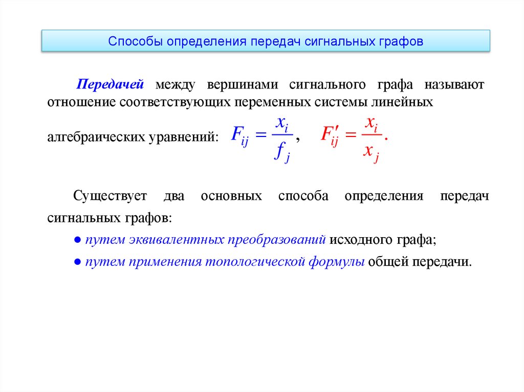 Способы определения передач сигнальных графовПередачей между вершинами сигнального графа называют