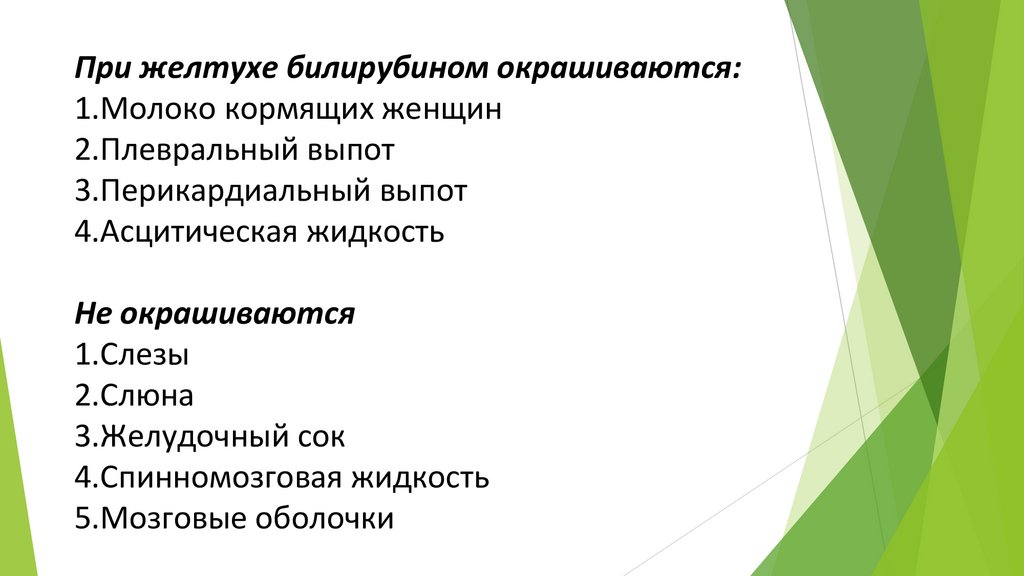 При желтухе билирубином окрашиваются:1.Молоко кормящих женщин