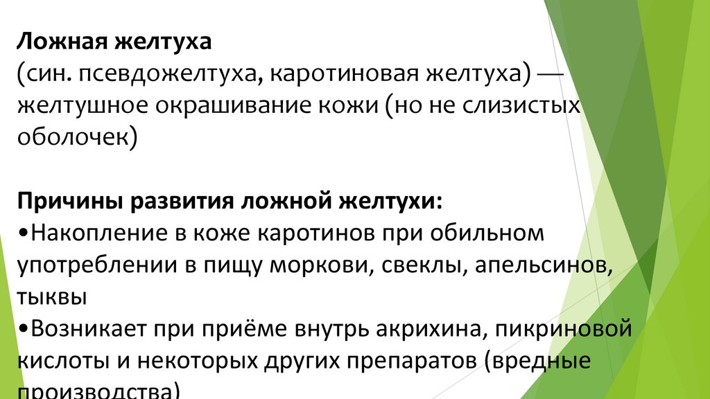 Ложная желтуха(син. псевдожелтуха, каротиновая желтуха) —