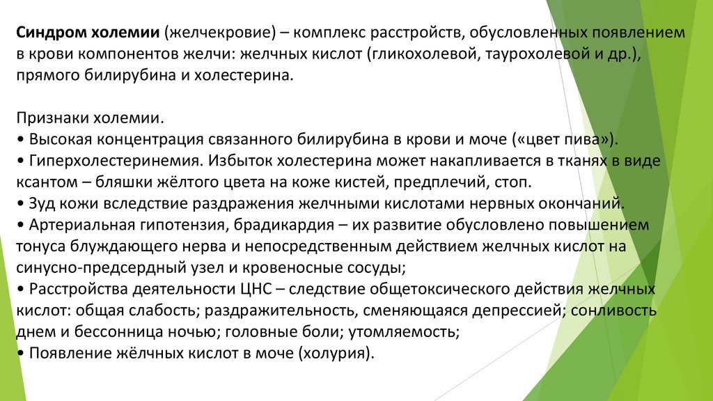 в крови и моче обнаруживаются желчные кислоты (холемия и холурия).