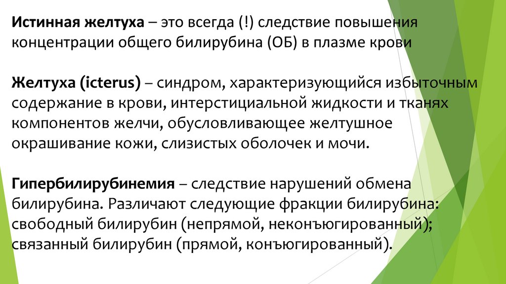 Истинная желтуха – это всегда (!) следствие повышенияконцентрации общего билирубина (ОБ) в плазме крови