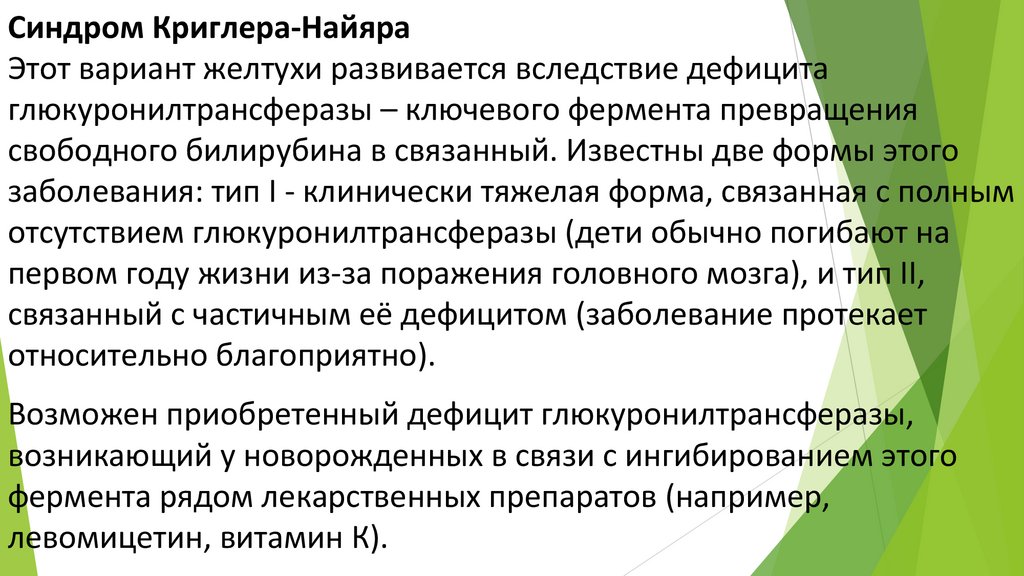 Синдром Криглера-НайяраЭтот вариант желтухи развивается вследствие дефицита