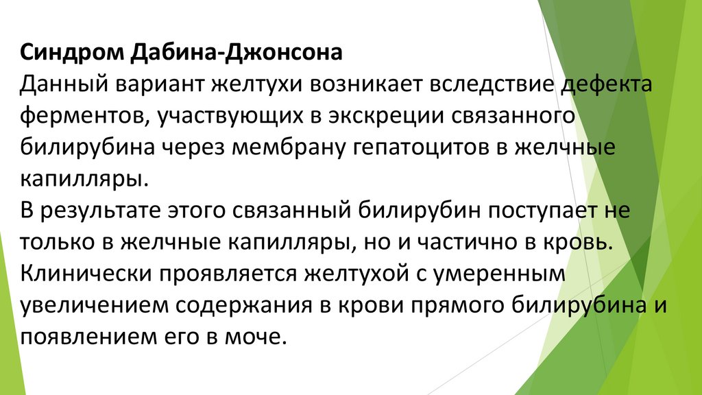Синдром Дабина-ДжонсонаДанный вариант желтухи возникает вследствие дефекта