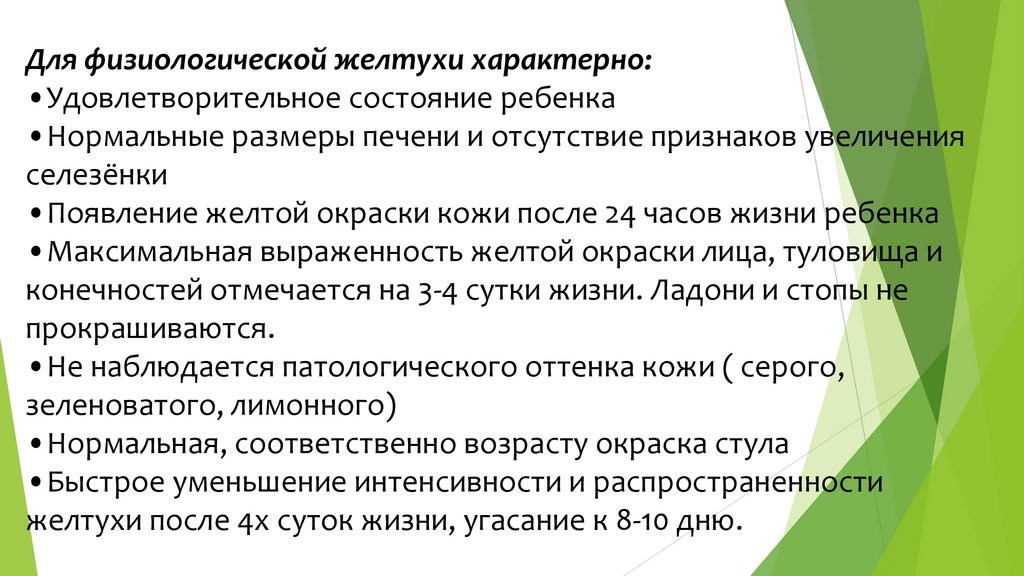 Для физиологической желтухи характерно:•Удовлетворительное состояние ребенка