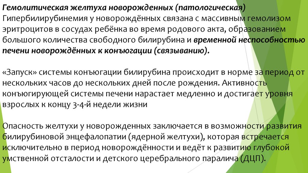 Гемолитическая желтуха новорожденных (патологическая)Гипербилирубинемия у новорождённых связана с массивным гемолизом