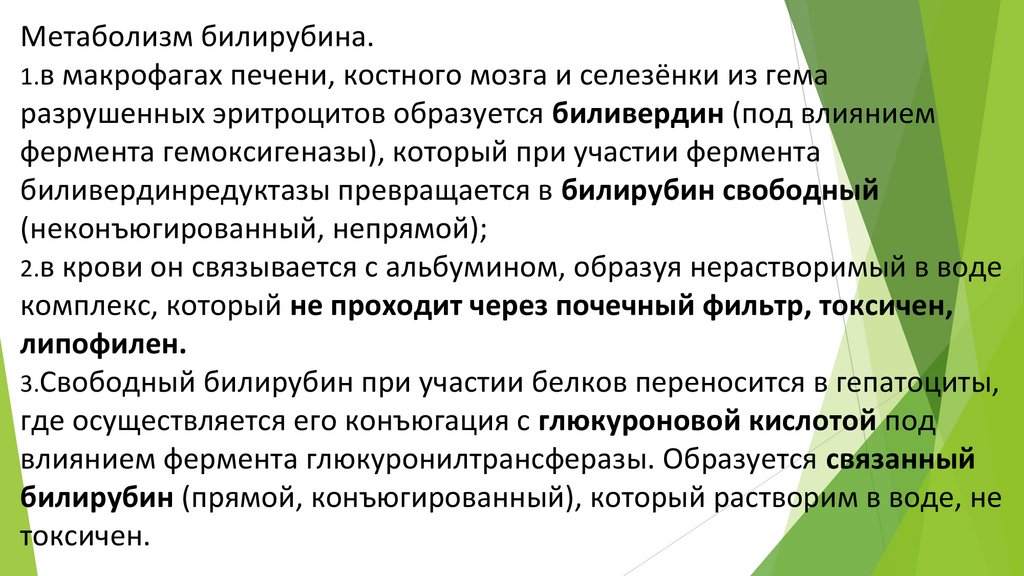 Метаболизм билирубина.1.в макрофагах печени, костного мозга и селезёнки из гема