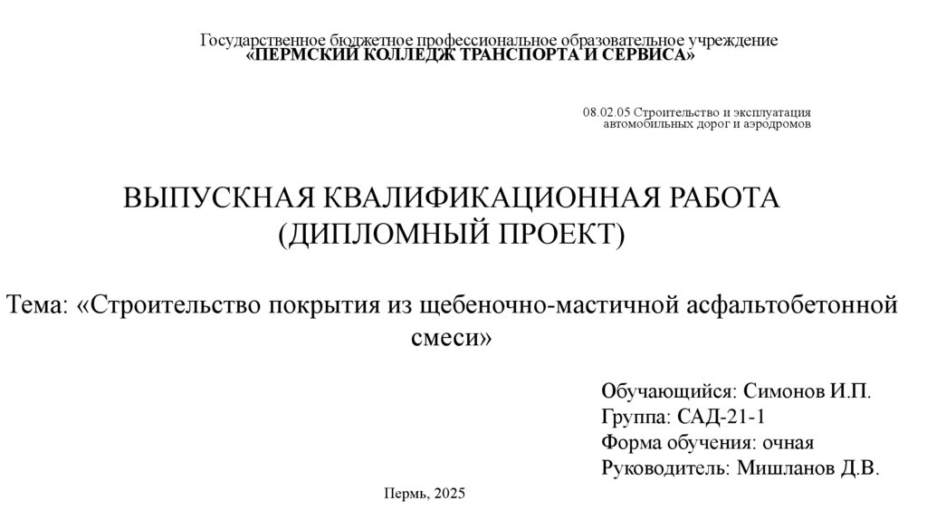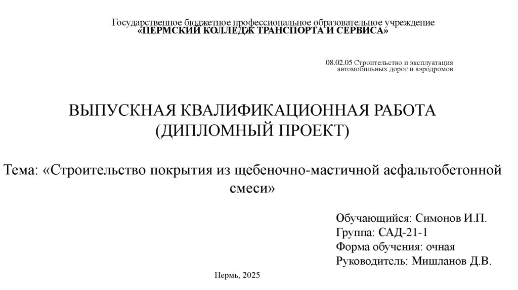 Тема: «Строительство покрытия из щебеночно-мастичной асфальтобетонной