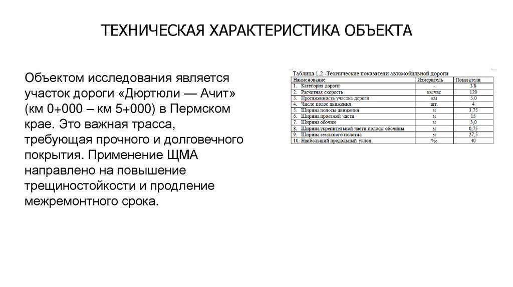 ТЕХНИЧЕСКАЯ ХАРАКТЕРИСТИКА ОБЪЕКТАОбъектом исследования является
