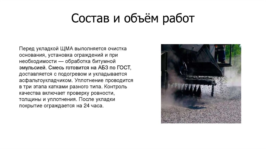 Состав и объём работПеред укладкой ЩМА выполняется очистка