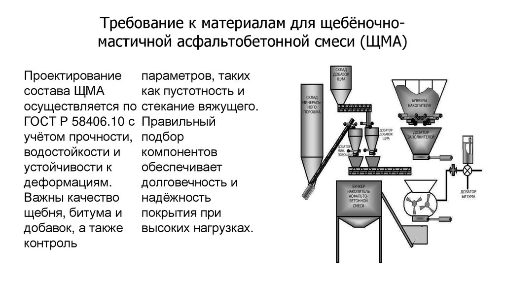 Требование к материалам для щебёночномастичной асфальтобетонной смеси (ЩМА)Проектирование