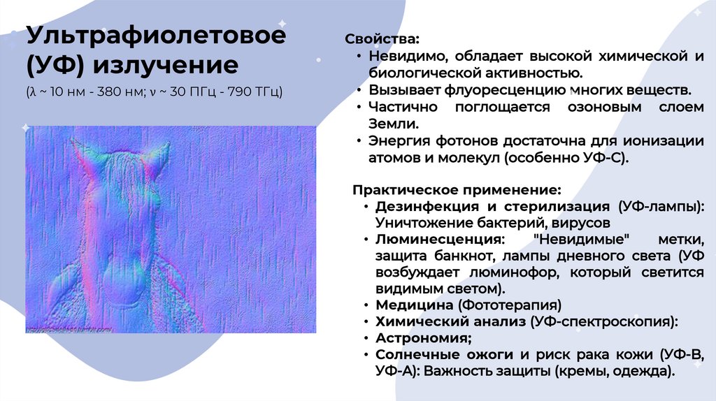 (λ ~ 10 нм - 380 нм; ν ~ 30 ПГц - 790 ТГц)