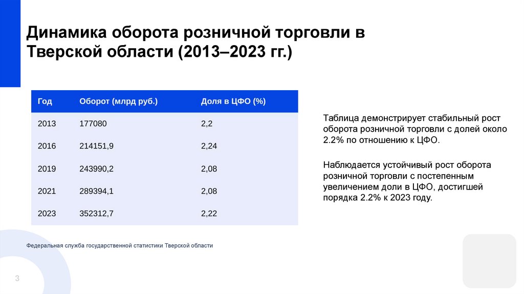 Динамика оборота розничной торговли вТверской области (2013–2023 гг.)
