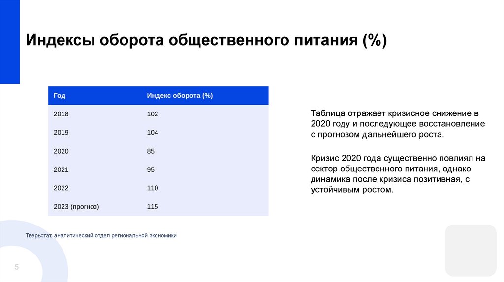 Индексы оборота общественного питания (%)Таблица отражает кризисное снижение в