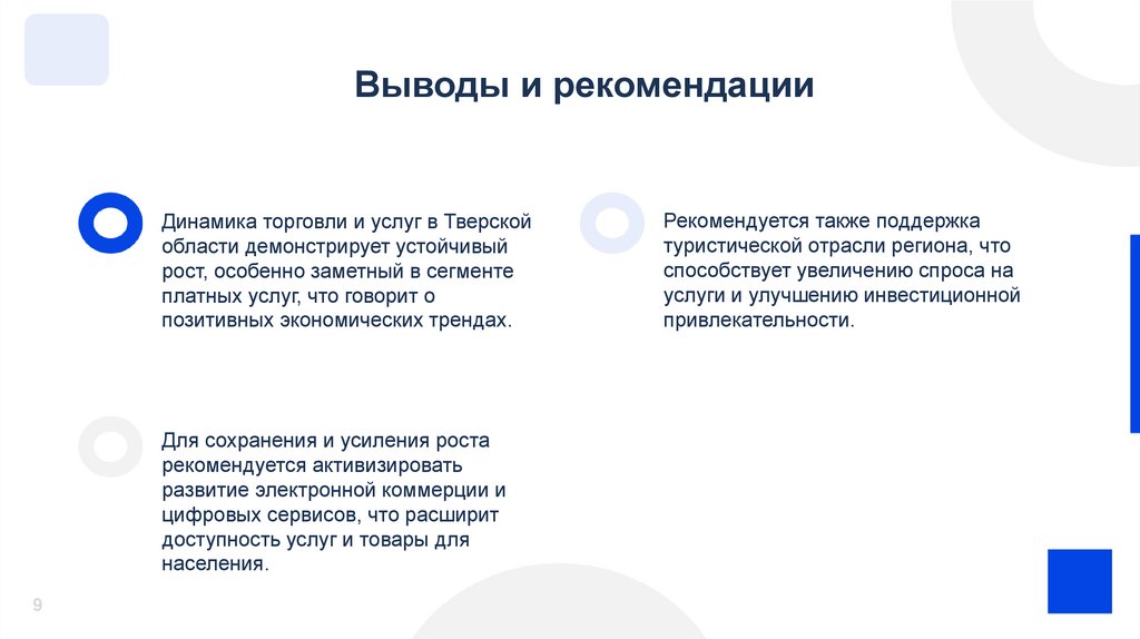 Выводы и рекомендацииДинамика торговли и услуг в Тверской