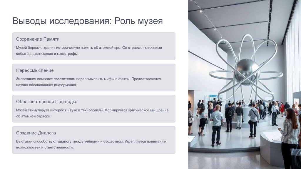 Музей бережно хранит историческую память об атомной эре. Он отражает ключевые