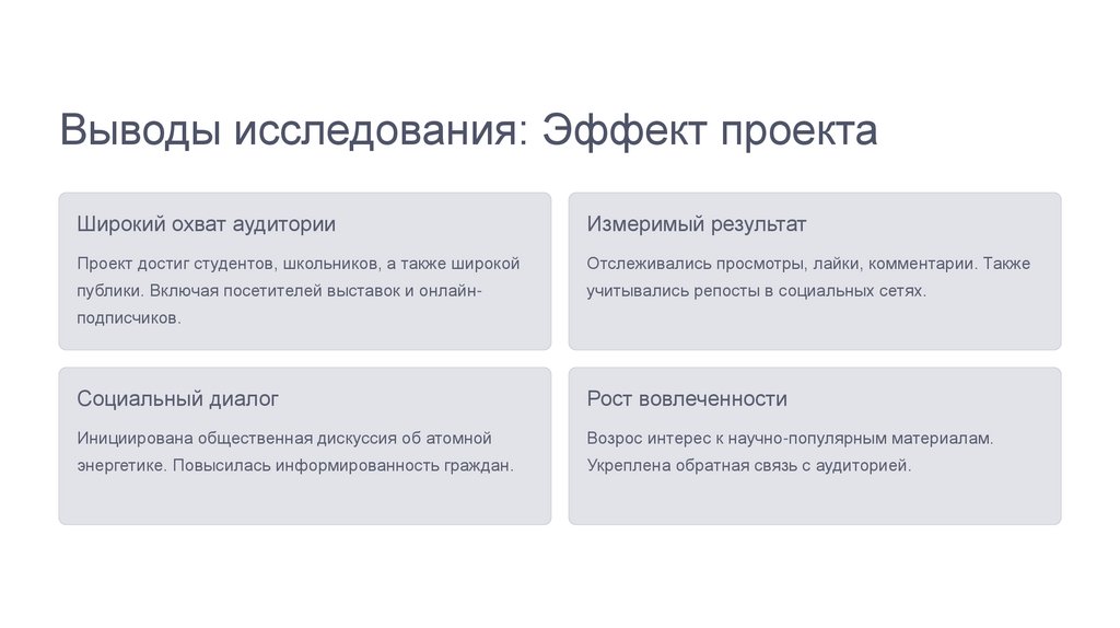 Выводы исследования: Эффект проектаШирокий охват аудитории