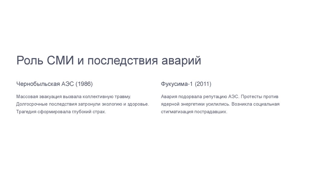 Роль СМИ и последствия аварийЧернобыльская АЭС (1986)