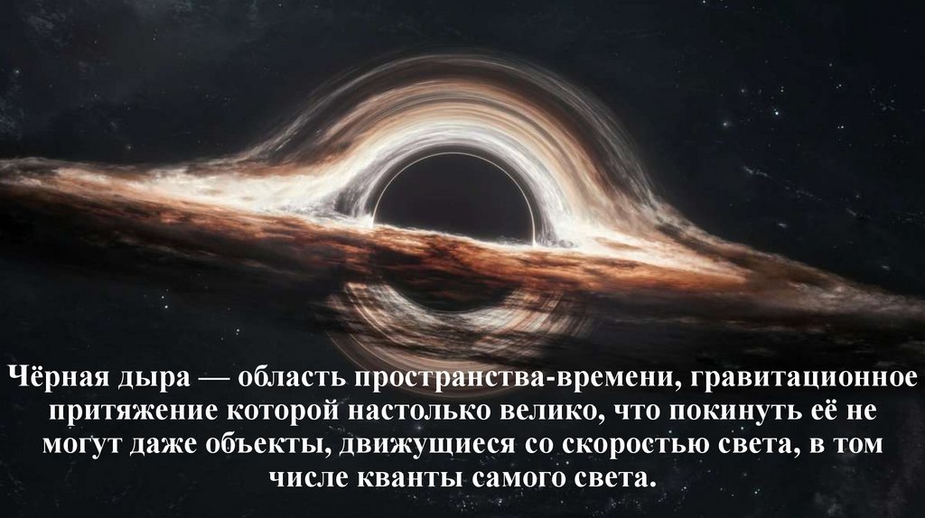 Чёрная дыра — область пространства-времени, гравитационноепритяжение которой настолько велико, что покинуть её не
