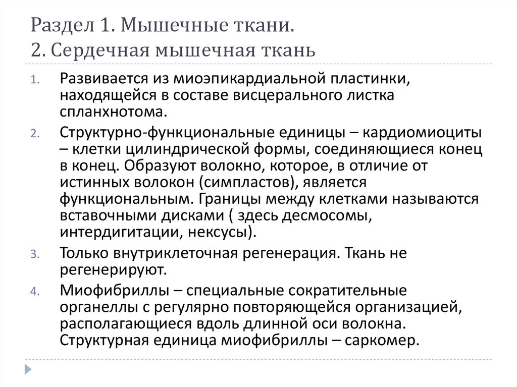 3. Раздел 1. Мышечные ткани. 2. Сердечная мышечная ткань