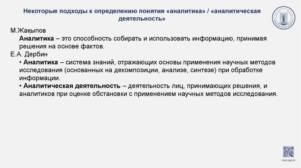 Некоторые подходы к определению понятия «аналитика» / «аналитическаядеятельность»